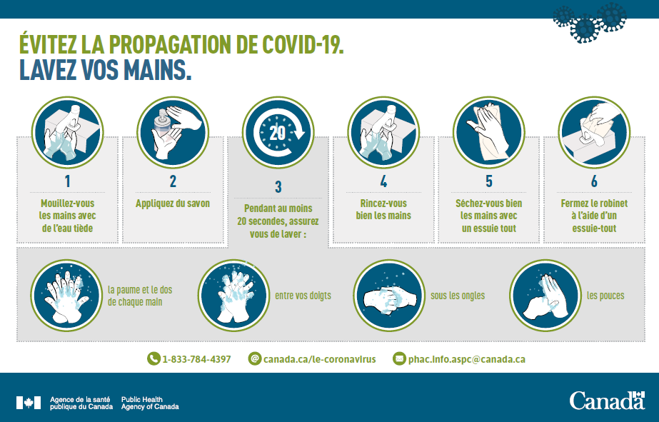 Comme la situation peut évoluer rapidement, nous vous invitons également à consulter régulièrement le site du Ministère de la santé et des services sociaux du Québec afin d’obtenir plus de détails sur le sujet : Québec.ca/coronavirus
