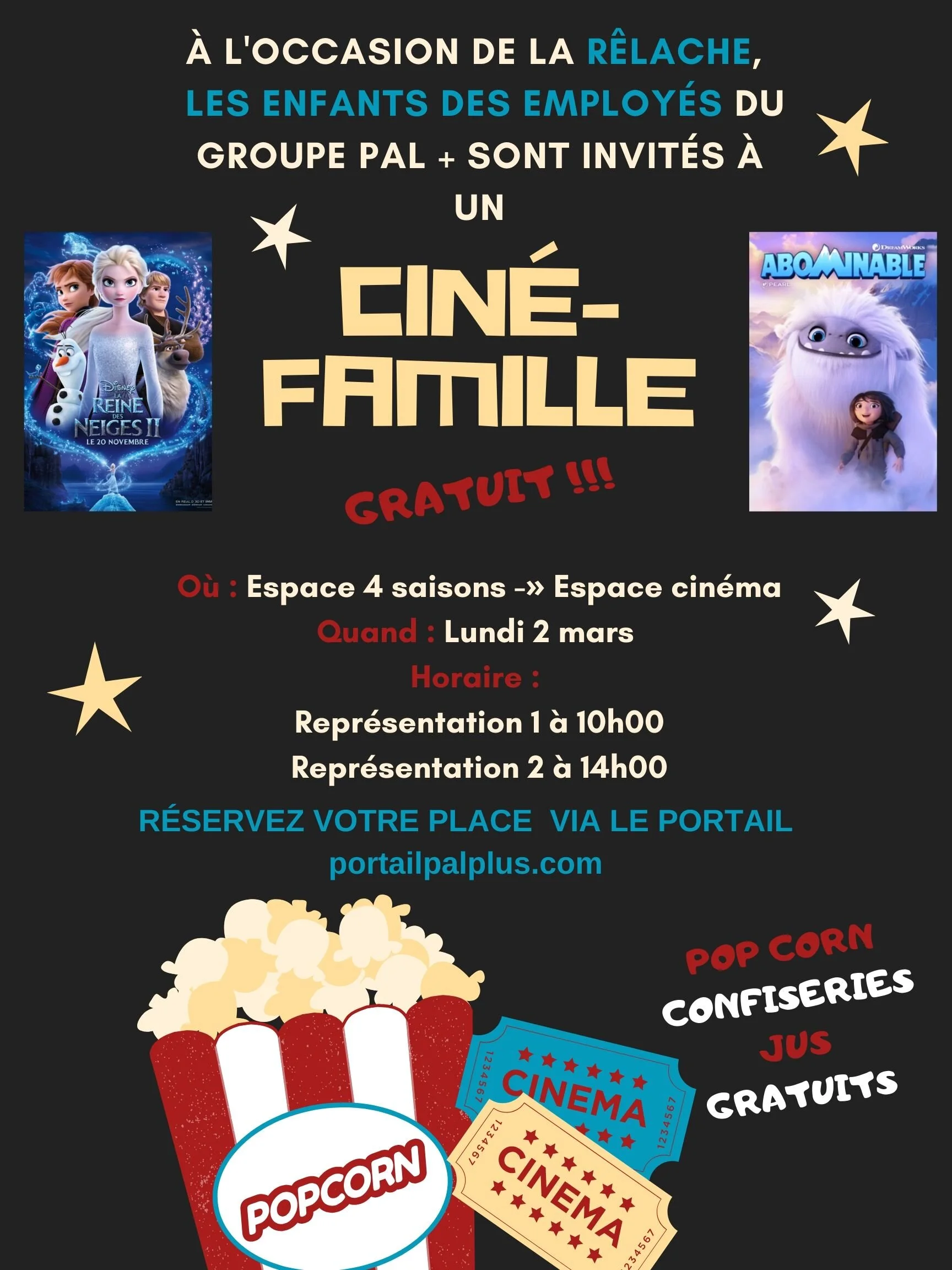 Pour une 2e année consécutive, nous avons choisi de t’inviter toi et tes enfants à une représentation cinéma à l’Espace 4 Saisons.